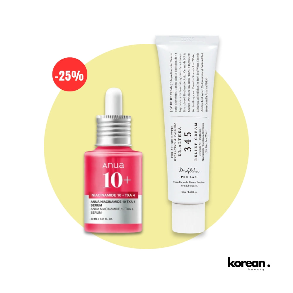 Ce pack associe un sérum concentré en Niacinamide 10% + TXA 4% pour corriger l’hyperpigmentation, et une crème apaisante réparatrice pour hydrater, calmer et renforcer la barrière cutanée.